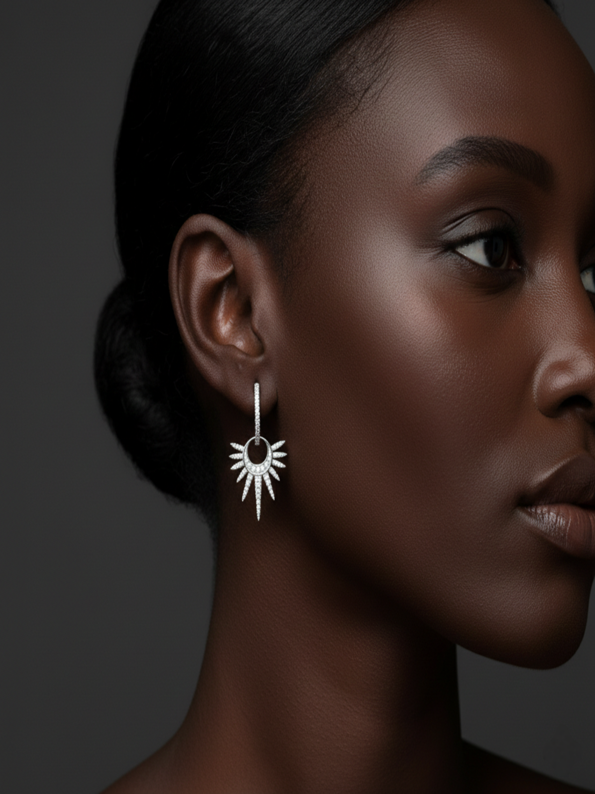 Elevate your jewelry collection with a touch of celestial brilliance. These exquisite drop earrings are a masterclass in intricate design. Featuring a sterling silver and zirconia. The centerpiece is a delicately curved crescent moon cradled by a dramatic sunburst of tapered rays.